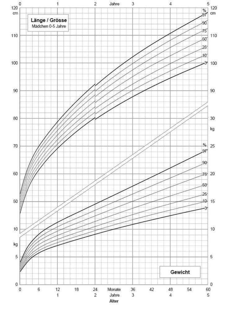 Diese Formel gilt sowohl für Jungen als auch für Mädchen. Der BMI allein hat jedoch nur eine begrenzte Aussagekraft: Bei Kindern verändert sich das Verhältnis von Gewicht zu Grösse mit zunehmendem Alter fortlaufend. Einheitliche Grenzwerte für Über- oder Untergewicht gibt es deshalb nicht. Um das Gewicht eines Kindes fachgerecht zu beurteilen, ist der Vergleich mit alters- und geschlechtsspezifischen Wachstumskurven nötig. Nur so lässt sich erkennen, ob das Gewicht Ihres Kindes im Normbereich liegt.