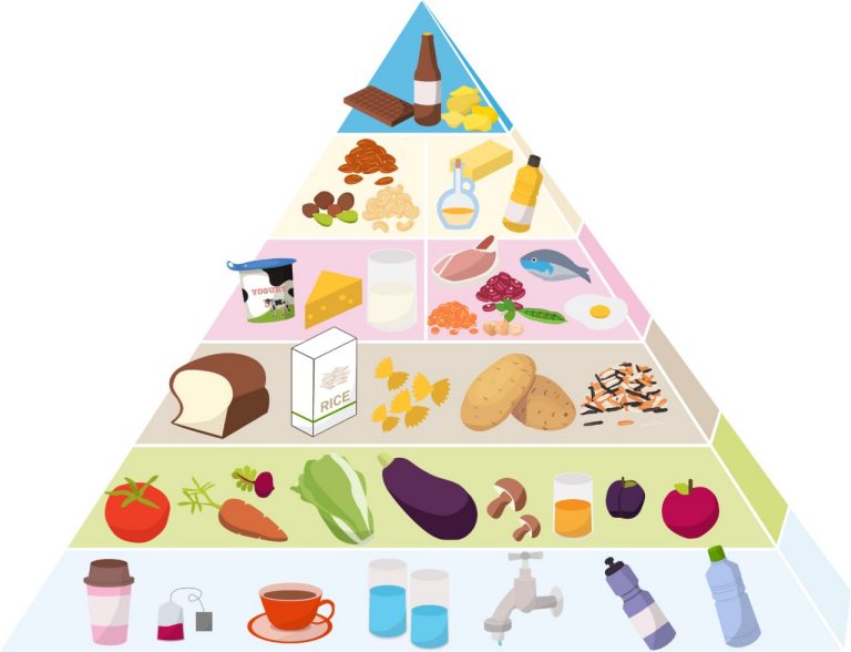 What is a food pyramid? The food pyramid shows all the elements of a balanced diet. It categorises different foods into groups and shows which we should eat more of and which we should eat less of. The food pyramid’s recommendations are tailored to the needs of healthy people aged between 18 and 65.