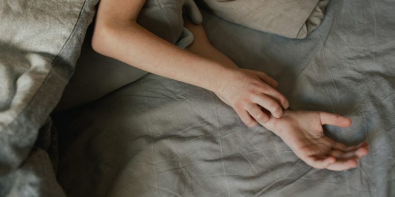 La gale commence souvent par de fortes démangeaisons, surtout la nuit. L’apparence typique de la gale ? Une éruption cutanée avec des nodules rouges et des lignes qui apparaissent en raison des sillons créés par les acariens. La gale touche surtout certaines parties du corps comme les espaces entre les doigts, les poignets, les coudes, les aisselles, la taille, les parties génitales et les fesses. Chez les nourrissons et les enfants en bas âge, les symptômes de la gale apparaissent également au niveau du cuir chevelu, du visage, des paumes et de la plante des pieds.